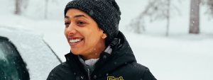 A imagem mostra Alice em meio à uma paisagem repleta de neve na Suécia, e faz referência ao momento em que a jogadora chegou na Europa para investir em sua carreira no futebol.