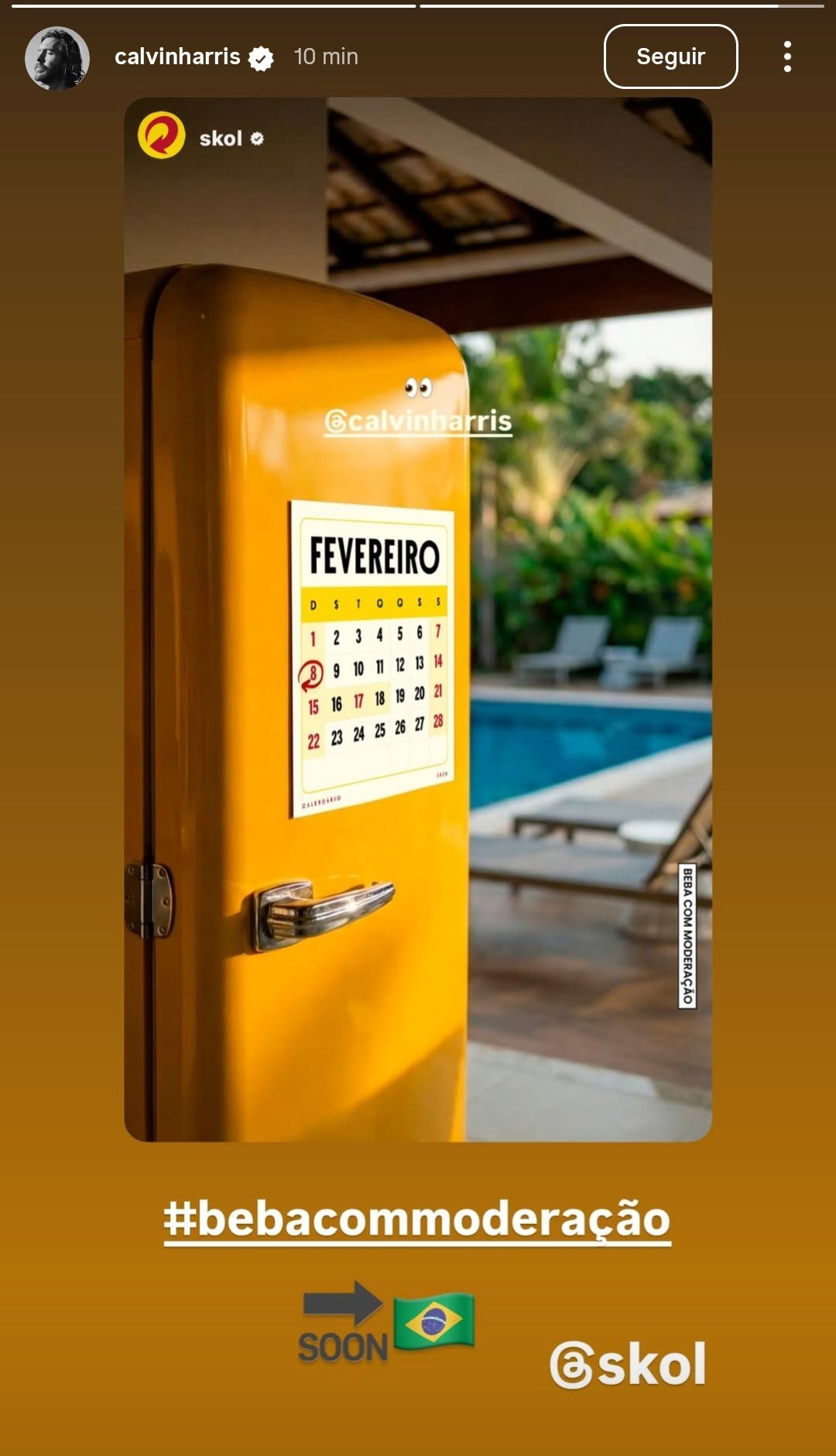 As especulações sobre a vinda de Calvin Harris ao Brasil começaram na tarde de ontem, quando o DJ repostou nos stories de seu Instagram uma publicação feita pela Skol com um calendário marcando a data do bloco e o perfil de Calvin Harris.